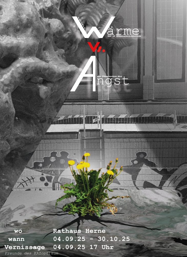04.09. – 30.10.25 Jahresausstellung KAZoptikum. Wärme in 4 Dimensionen vs. die Dimension der Angst. Vernissage am 04.09. um 17 Uhr im Herner Rathaus.