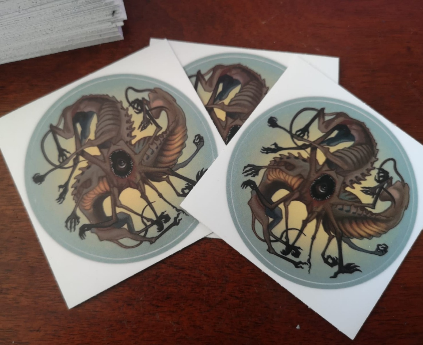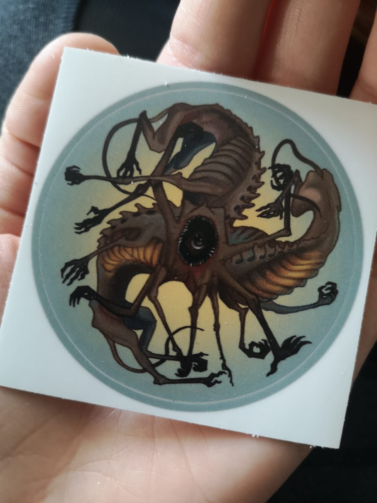 Sticker von einer Kreatur namens Agnes. Es gibt kein wirkliches oben oder unten bei diesem Werk – zwischen dem Gewirr von Beinen tut sich ein Schlund auf, der den Betrachter anstarrt.