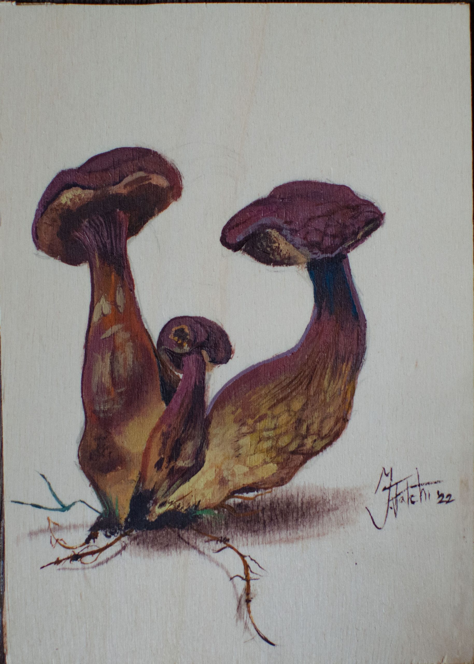 Studie eines Hexenröhrlings, Acryl auf Holz. Ca. 10,5 x 14,5cm.