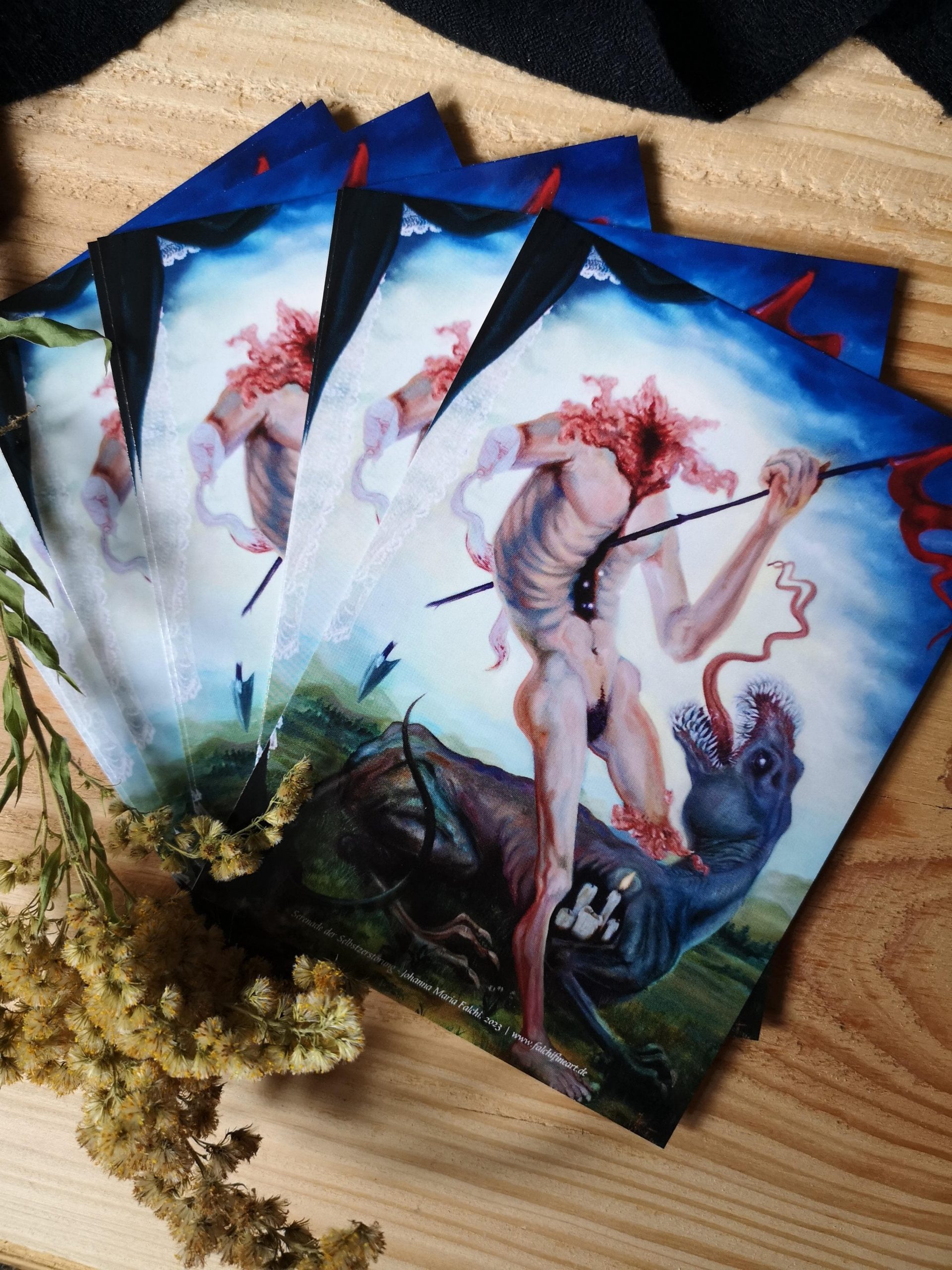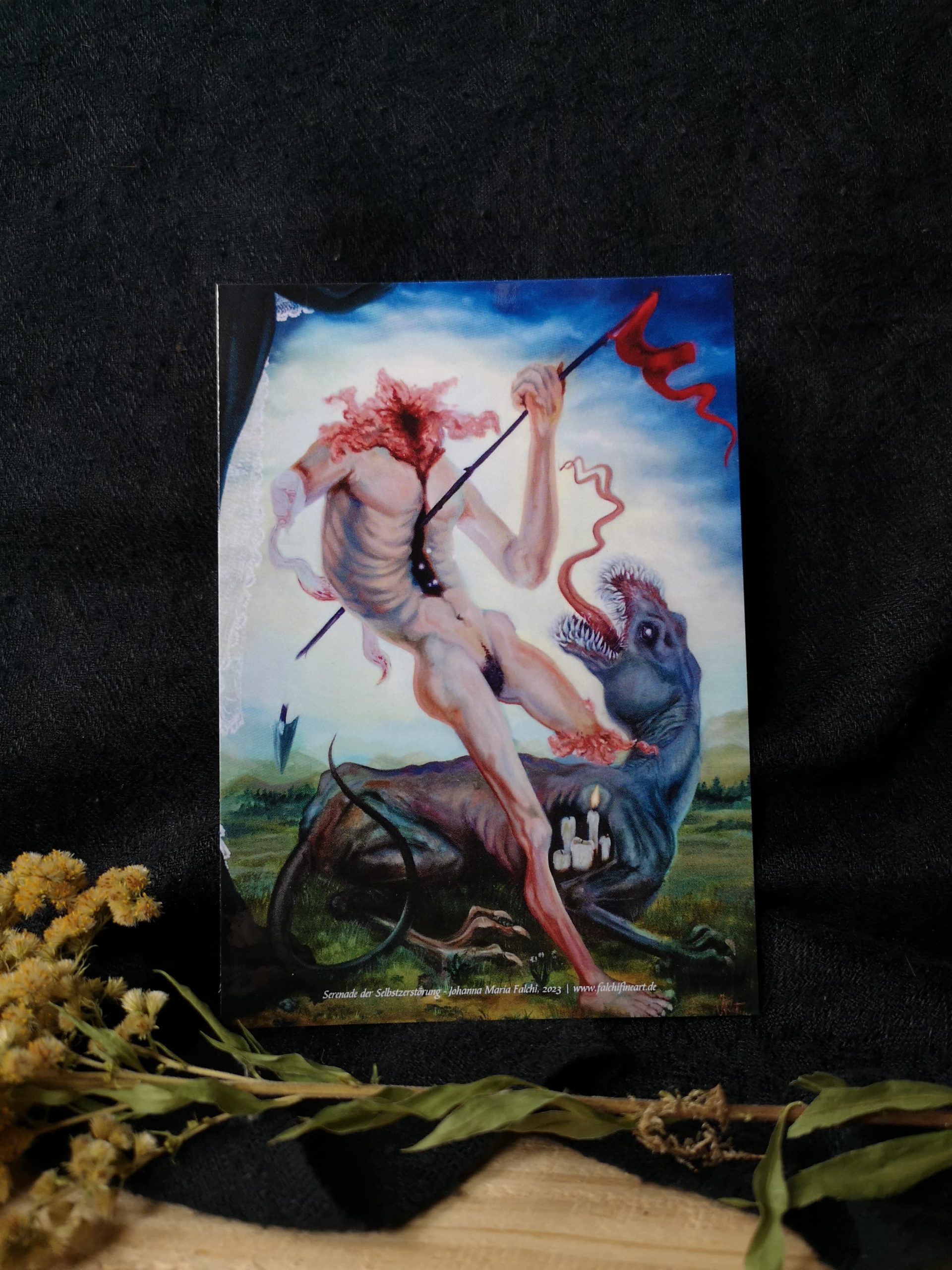 Abgebildet ist das Gemälde „Serenade der Selbstzerstörung“ aus dem Jahr 2023 von der Künstlerin Johanna Maria Falchi.